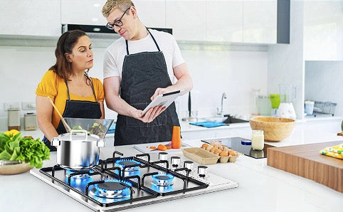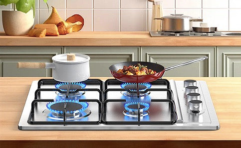 - NG / LPG Convertible: The gas cooktop 4 burner comes with a preset natural gas nozzle. This dual fuel gas hob is designed for natural gas and liquid propane. This kitchen stove default settings for use with Natural Gas. 2 different gas supply options and the electric ignition will bring more convenience to your life.