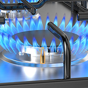 - Thermocouple Protection: VBGK 4 burner gas stove top adopts automatic thermocouple protection to ensure that the gas is automatically turned off when the flame is not detected to avoid gas leakage. Gas stove with automatic ignition via rotating control, flexible and accurate gas adjustment. Safely touch the knob while cooking without burning your hands. It is 110V AC pulse Ignition system.