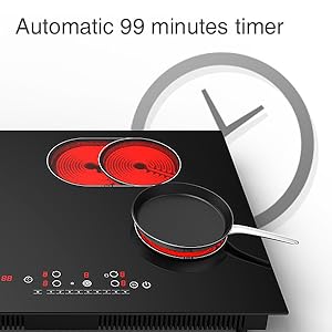 - 【Safety Induction Stove】The electric cooktop 4 burners are equipped with a child safety lock, timer and overheat protection device, and round edges without sharp corners. Set the timer from 1 minute to 99 minutes. The use of upgraded low-noise cooling fans can greatly improve the heat dissipation effect. Safe and user-friendly.