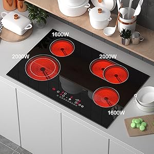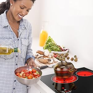 - 【Compatible with Any Flat-bottomed Kitchenware】【Hard Wire, No Outlet Plug】ANHANE built-in electric cooktop 4 burners is very convenient that is suitable for all types of cookware, such as aluminum pans, stainless steel pans, ceramic pans, glass pots, copper pans, cast iron frying pans, and so on. Please install the electric radiant cooktop according to the product manual and contact us at any time.