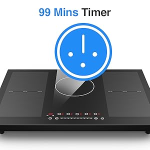 Convenient Digital Display and Controls: The Induction cooktop features a user-friendly touchscreen control panel with an easy-to-read LED display.The digital display allows you to easily adjust the cooking temperature and time. The timer function can be set for up to 99 minutes, providing precise control over your cooking process.The touchscreen control panel ensures intuitive operation,The indicator lights keep you informed about the operating status.No complicated buttons, easy to operate.