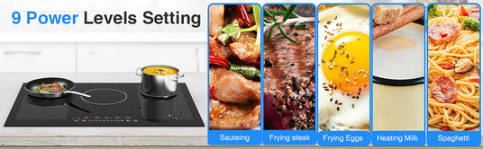 Adjustable Heat Levels: This 30" Induction stove top has Enjoy versatile cooking options with 9 adjustable heat levels. Ranging from 0 to 9P for precise heating of each zone individually, these heat levels allow you to adjust the cooking power to suit your needs.The 0P setting pauses heating temporarily,The P setting provides rapid heat-up within 5 minutes,Extreme heating function. The Induction cooktop selected heat level is clearly displayed on the screen for convenience.