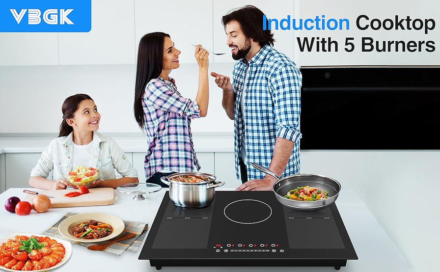 Five Burner Induction Cooktop - 30 Inch Built-in Induction Cooktop wiht 9000W High Power and Touchscreen Control