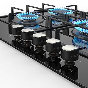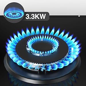 - 【5 Powerful Burners】Universal gas nozzle for stoves: 9mm/0.354 inch diameter inner diameter hose,This 36 inch gas cooktop is equipped with 5 powerful burners---3.3KW/3.0KW/1.75KW*2/1.0KW. It can help you save time and meet your various cooking needs.