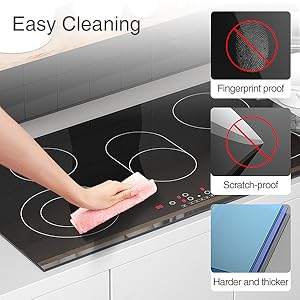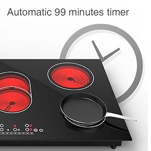 - 【NO Radiation & Safety Protection】Our cooktops work by far infrared heating and have no electromagnetic radiation. High safety performance, it can be used directly when connected to electricity, with no worry about gas leakage. Our electric cooktop has some great protection features to ensure safety like Auto switch off, Residual heat indicator.