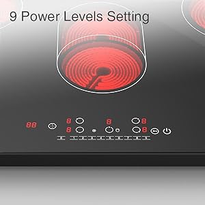 - 【9 Heat Level Electric Cooktop 】9 Power Levels, giving you greater control over Cooking Temperature with the powerful 8.6kW, meet all your needs of delicate heating accuracy. With an electric stove top, you can control the temperature more precisely than with gas or electricity. This better temperature control delivers consistent results, reducing the risk of over or under-cooking.