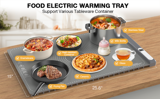 【Widely Compatible & Various Occasion】Designed for universal compatibility, our electric warming tray suits all types of materials tableware, as long as the high temperature resistant tableware can be used. Our food warmer is also a versatile home assistant, mask heating, dough fermentation and defrosting are all easily handled. Suitable for home use in all seasons. Versatile for every time, keeping the perfect temperature for family dinners, gatherings, events, parties, buffets, travel.