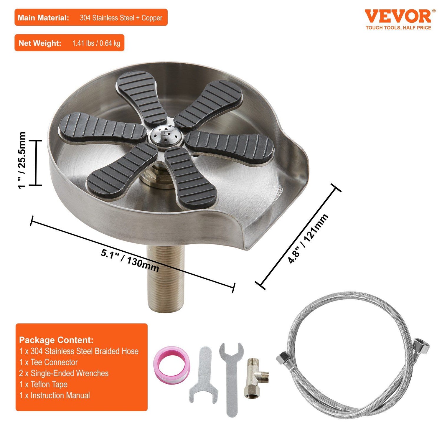 VEVOR Glass Rinser, 10 Powerful Spraying Jets 360° Rotating Cup Rinser for Sink, 304 Stainless Steel Faucet Cup Washer with Silicone Nonslip Pad for Baby Bottle, Glass Cup, Wine Glass (Drawing Base)
