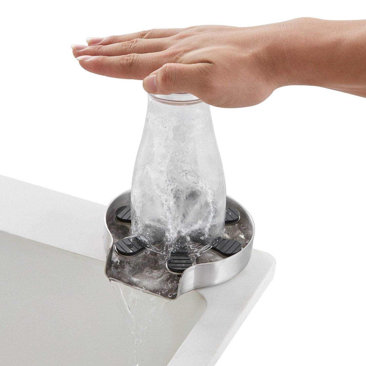 Effortless One-Hand Operation: VEVOR 360-degree rotation glass washer for sink allows for single-hand operation with convenience and safety. Simply turn the cup upside down and gently press the bottom to activate the automatic water spray for cleaning. Once the cup is cleaned, removing it immediately stops the water spray.