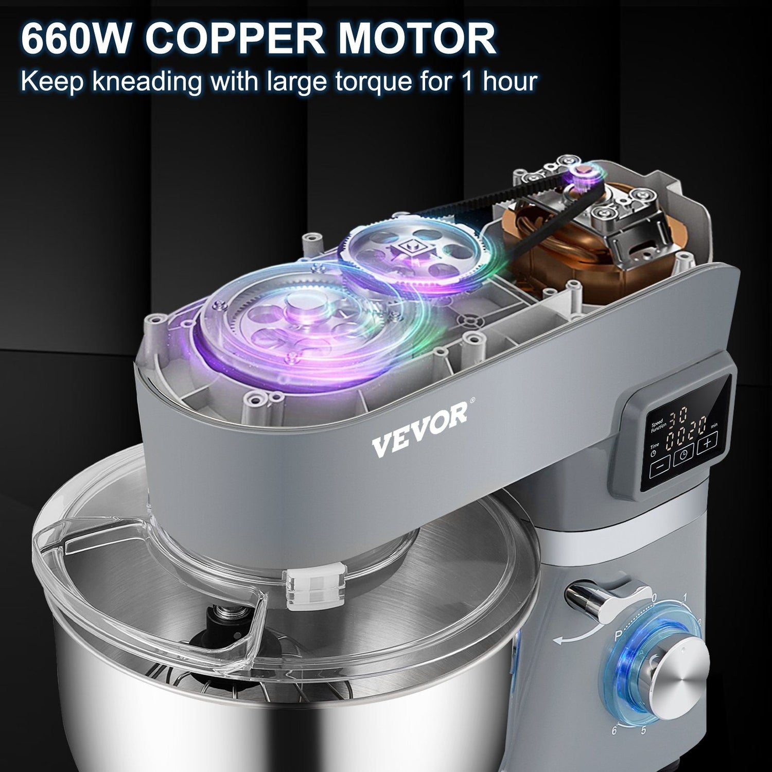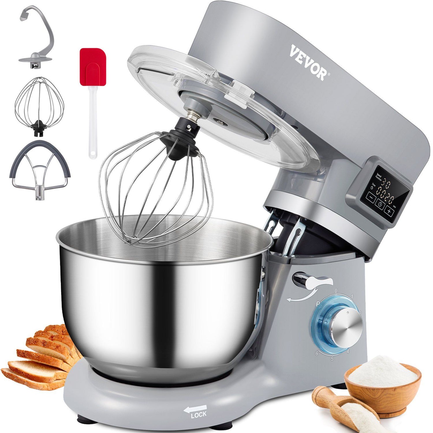 VEVOR Stand Mixer; 660W Electric Dough Mixer with 6 Speeds LCD Screen Timing; Tilt-Head Food Mixer with 5.8 Qt Stainless Steel Bowl; Dough Hook - 5.8 Qt is backordered and will ship as soon as it is back in stock.
