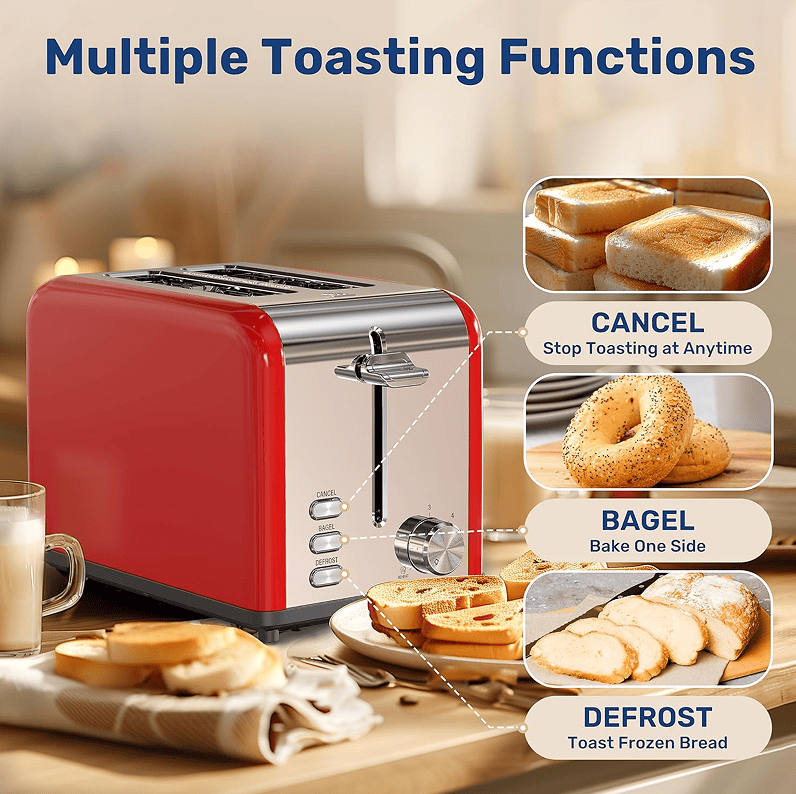 Perfect gift: The Toaster comes with an elegant matte finish and stainless steel trim, perfect for any trim. It is also an ideal birthday and housewarming gift, and also a perfect decoration for your home