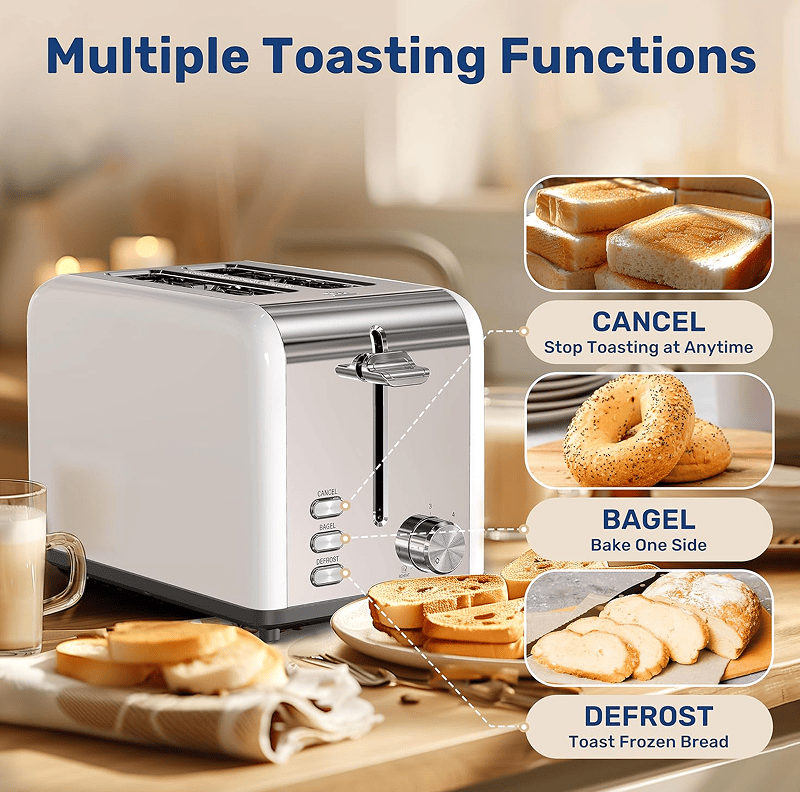 SKU: W1134P237563 White multi-earth oven 2-piece toaster 1.5-inch ultra-wide slot 6 Browning settings and 3 features (thaw / reheat / cancel) SUS304 Ultra-wide slot and removable breadcrumb tray, retro stainless steel style for bread and waffles stylish high lift bars