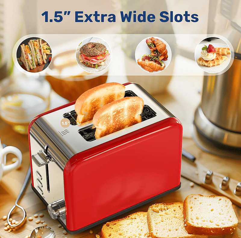 A 1.5-inch-wide slot: It has a 1.5-inch-wide slot that can bake different types of bread, such as waffles or thick handmade bread. Using surround heating technology to heat the bread up and down evenly, effectively avoid uneven baking