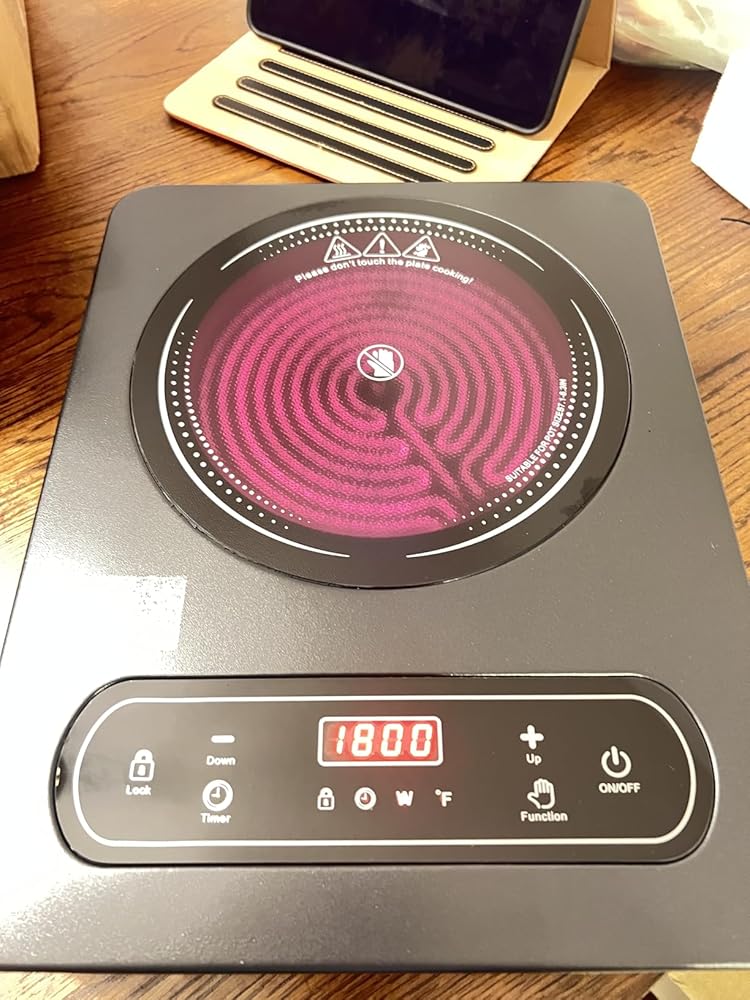 - Better than induction cooktop:This is 110V Portable single cooktop ,not an induction cooker. Electric stove top burner do not emit high-frequency radiation. It is superior to induction cooktop. It can protect pregnant women from electromagnetic radiation and they can use it with peace of mind. When cooking with an Electric cooktop for overheat protection, residual heat indication, auto shut-off ,Safety Lock,helping you create a healthy kitchen environment.