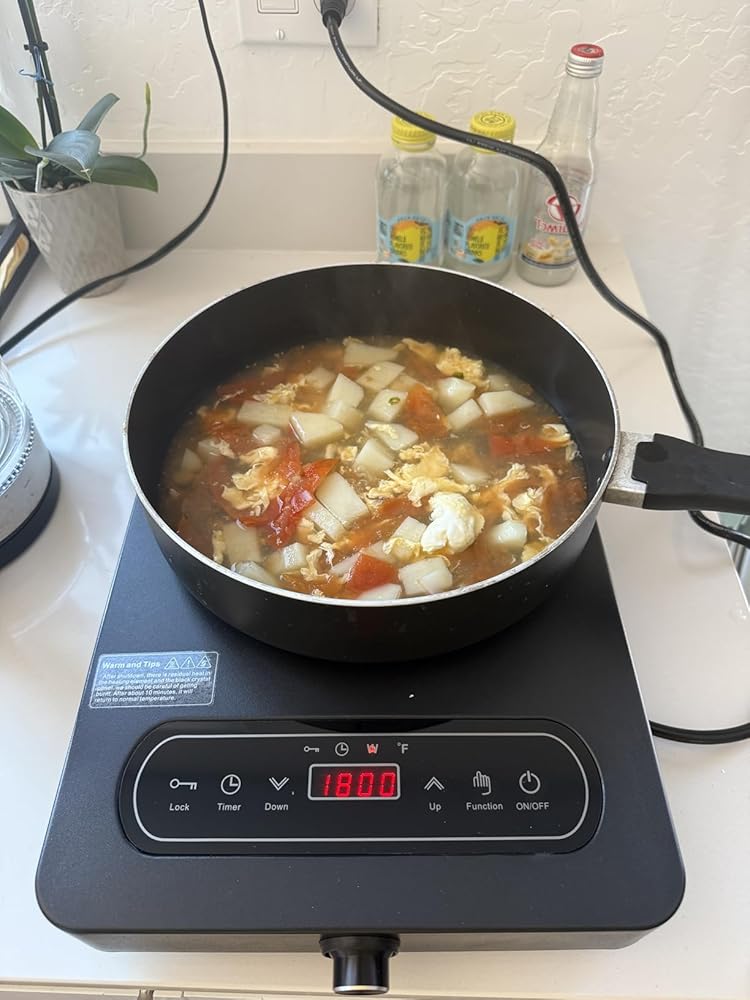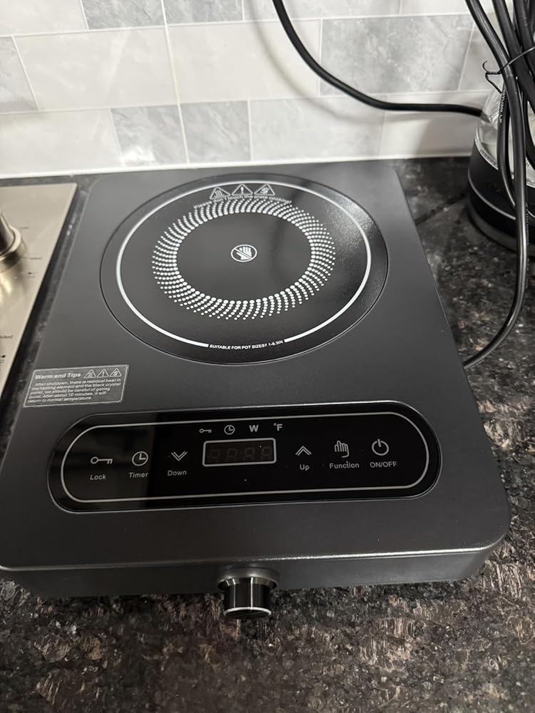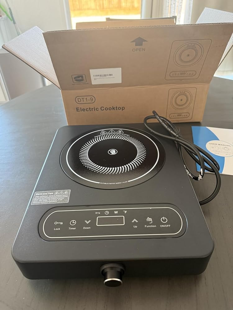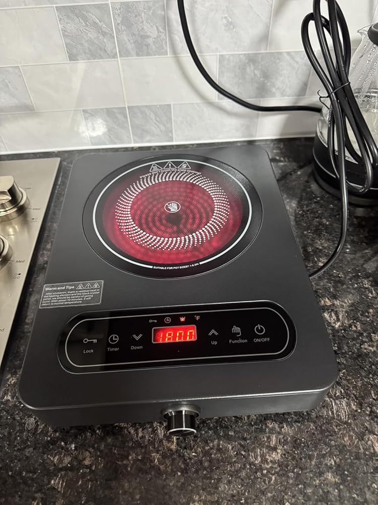 • Safe & Versatile:This electric stove top can be timed independently with digital timer to adjust the temperature, power, cooking mode. Portable cooktop this way you can manage your cooking time efficiently and do other things without worry. single electric burner has multiple safety protection such as child safety lock, overheating protection, Double ring heating and residual heat warning.