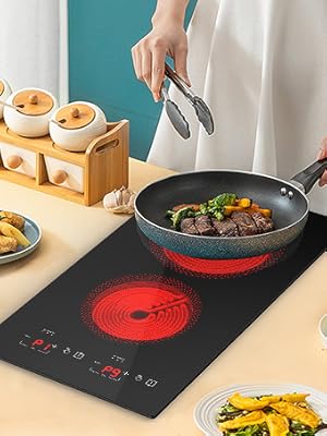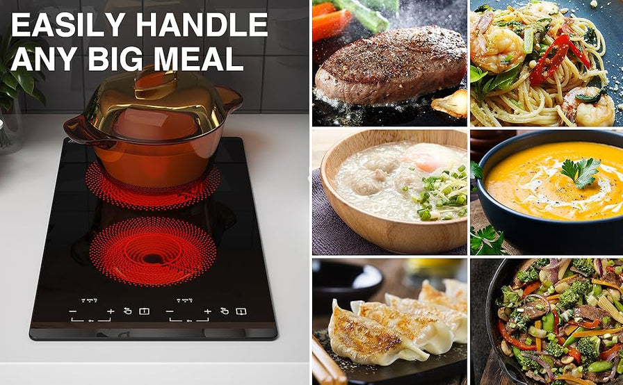 - 【110v Electric Burner Stove Top 2 Burners】✨Save up to 20% ✨The 12 inch electric cooktop features black polished crystal glass with digital touch control panel, sensitive to control, easy to clean and scratch proof. Double induction cooktop hot plate is ideal for office use, camping, party, RV, student dormitory, travel or as an extra cooking utensil in your kitchen.