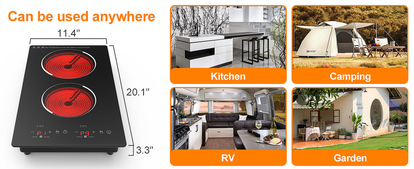 • Built-in Ceramic Cooktop Head: This portable electric stove burner can be built-in or placed independently. Easy to install. The smooth surface and built-in design save valuable countertop space, effortless cleaning and durable use for long time.