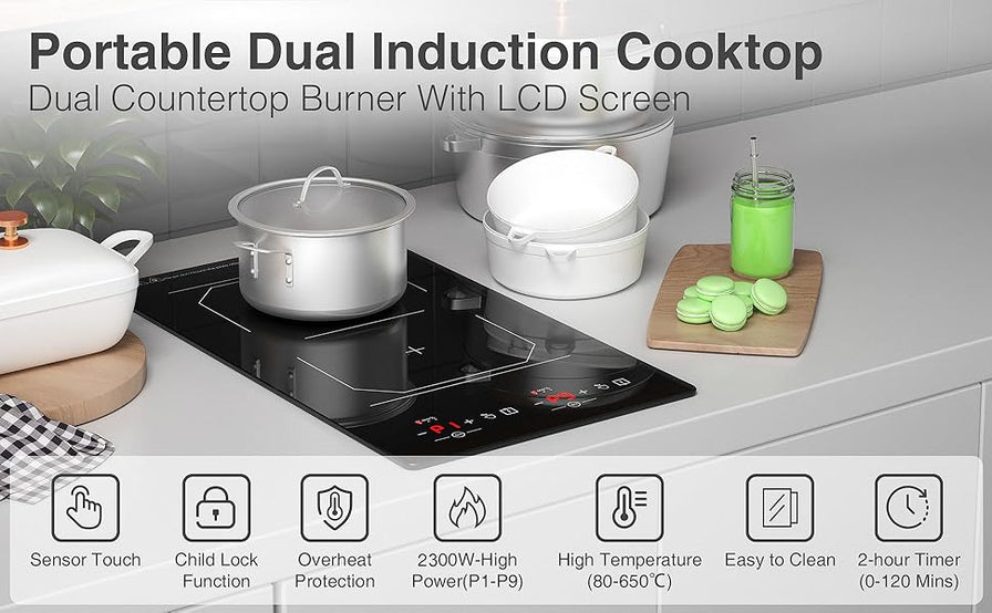 đăDouble Induction Cooktop With 2 Burnersăâ¨Save up to 20% â¨The induction cooktop 2 burners features black polished crystal glass with a digital touch control panel, sensitive to control, easy to clean, and scratch-proof. Double induction cooktop hot plate is ideal for office use, camping, party, RV, student dormitory, travel, or as an extra cooking utensil in your kitchen.