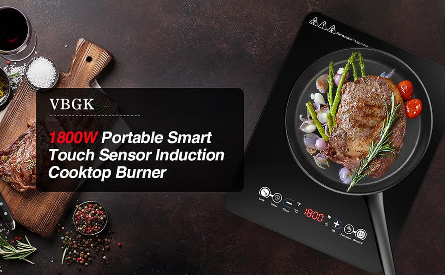 - Safe To Use: VBGK induction hot plate uses 110V~120V and 15A standard in all homes. Child Safety Lock system.cooktops Auto Pan Detection will automatically shut down unit after 30 seconds if no cookware is detected. Induction stove Equipped with diagnostic error message system, low and high voltage warning system.