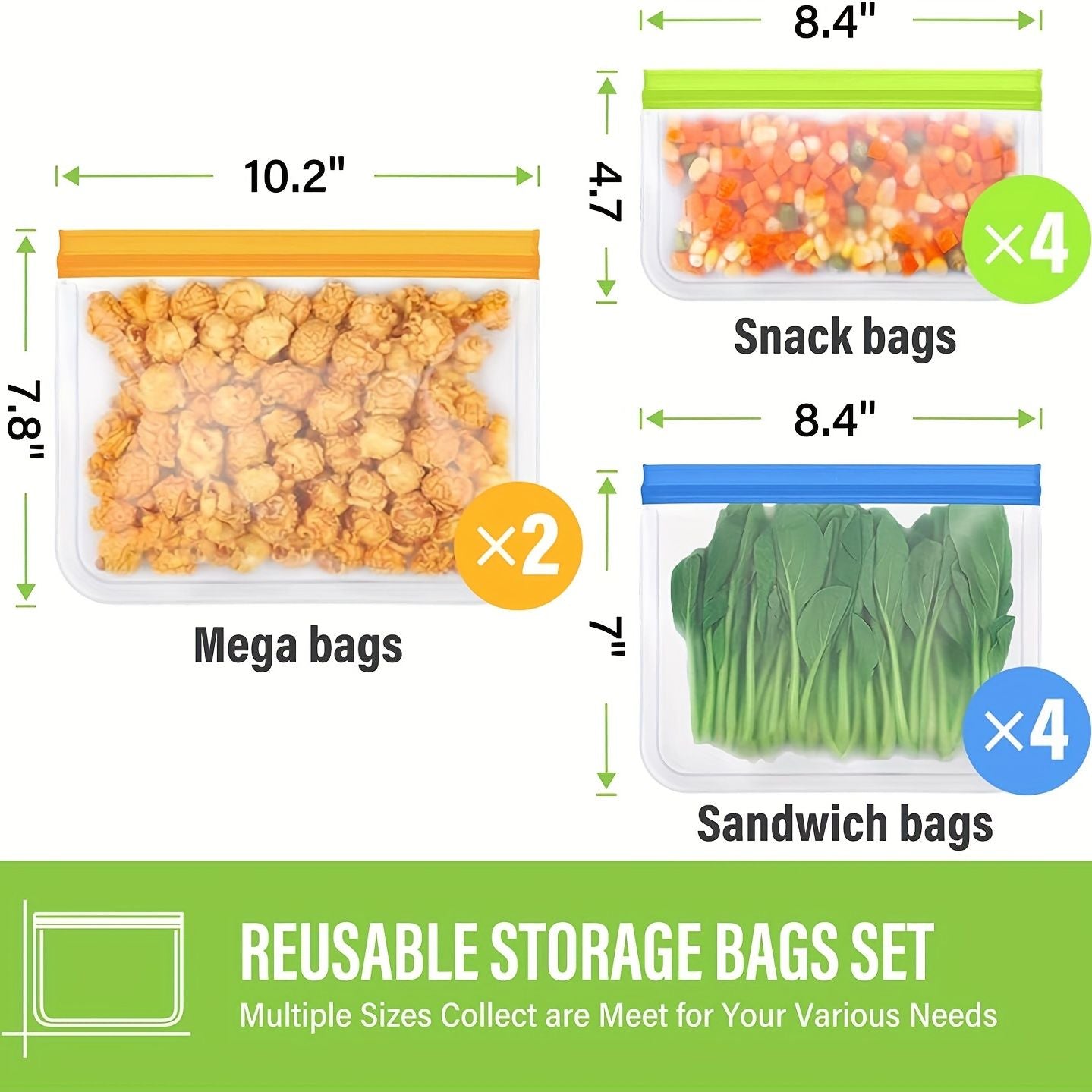 10pcs Reusable Food Storage Bags; BPA Free Flat Reusable Freezer Bags; Snack/Sandwich Bags Food Grade; Leakproof Storage Bags For Lunch; Marinate; Keep Fresh; Food Storage