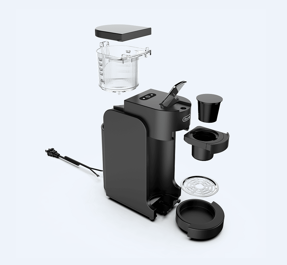 SKU: PSCM2001KCUPa 1450W Capsule coffee maker, 20Bar extraction Americano and espresso, suitable for capsule tray kcup, coffee powder, compatible coffee cup 119mm / 143mm / 175mm, automatic espresso, touch sensing