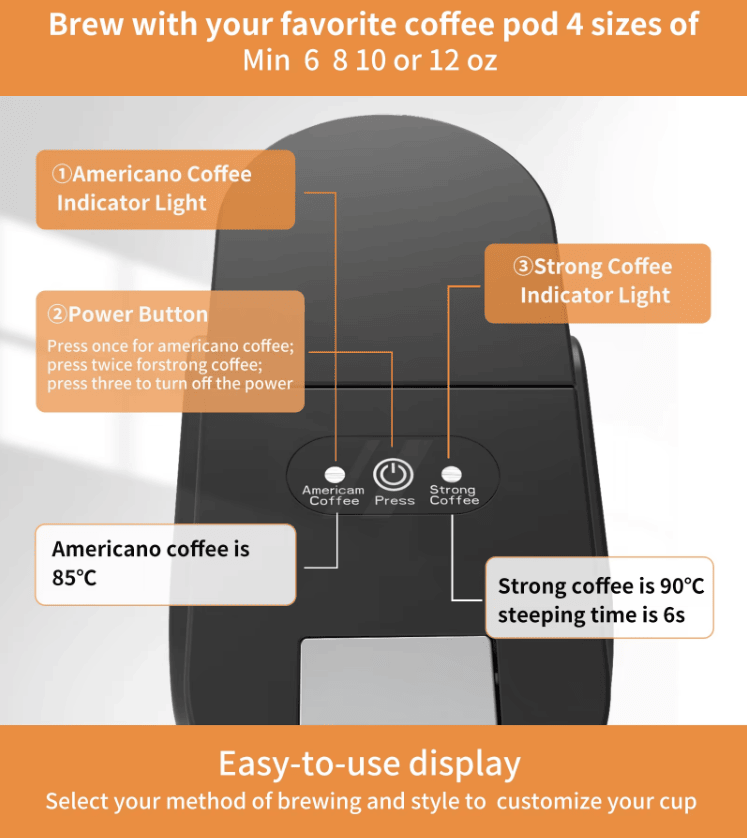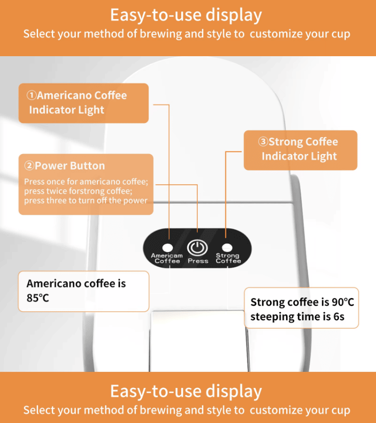 The capsule machine works in hot brewing and cold brewing modes, and it supports a programmable brewing time and allows you to customize the brewing method. Choose espresso (70 ml) or Lungo (110 ml). It only takes about 40 seconds to enjoy the coffee