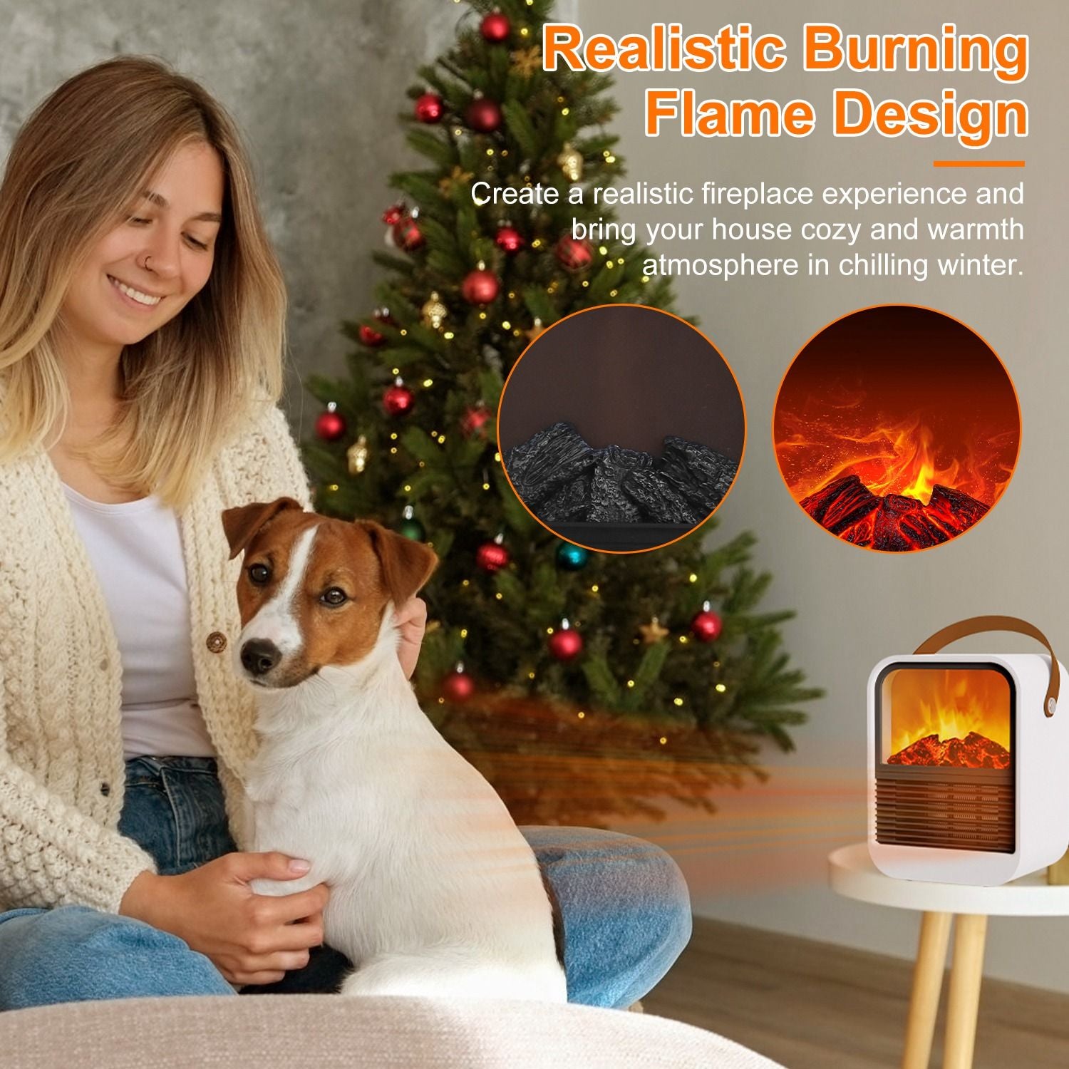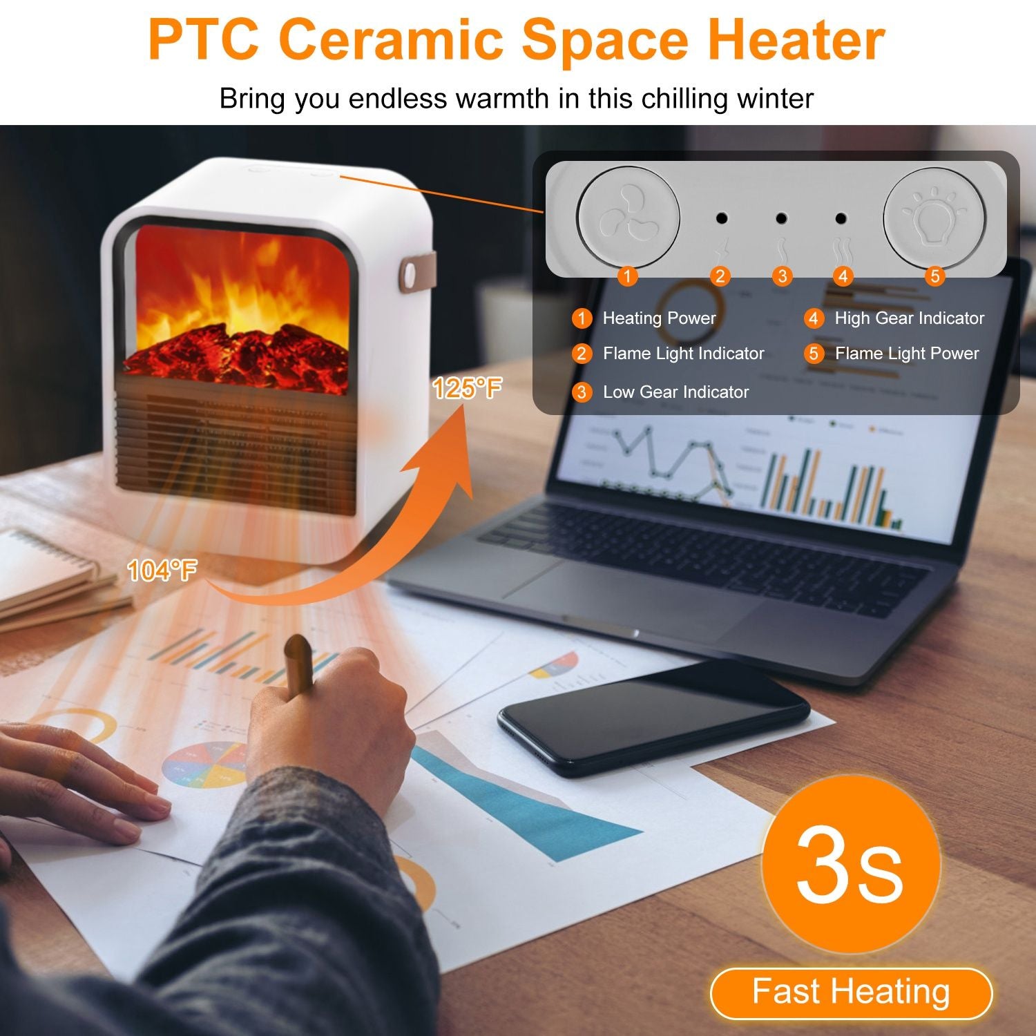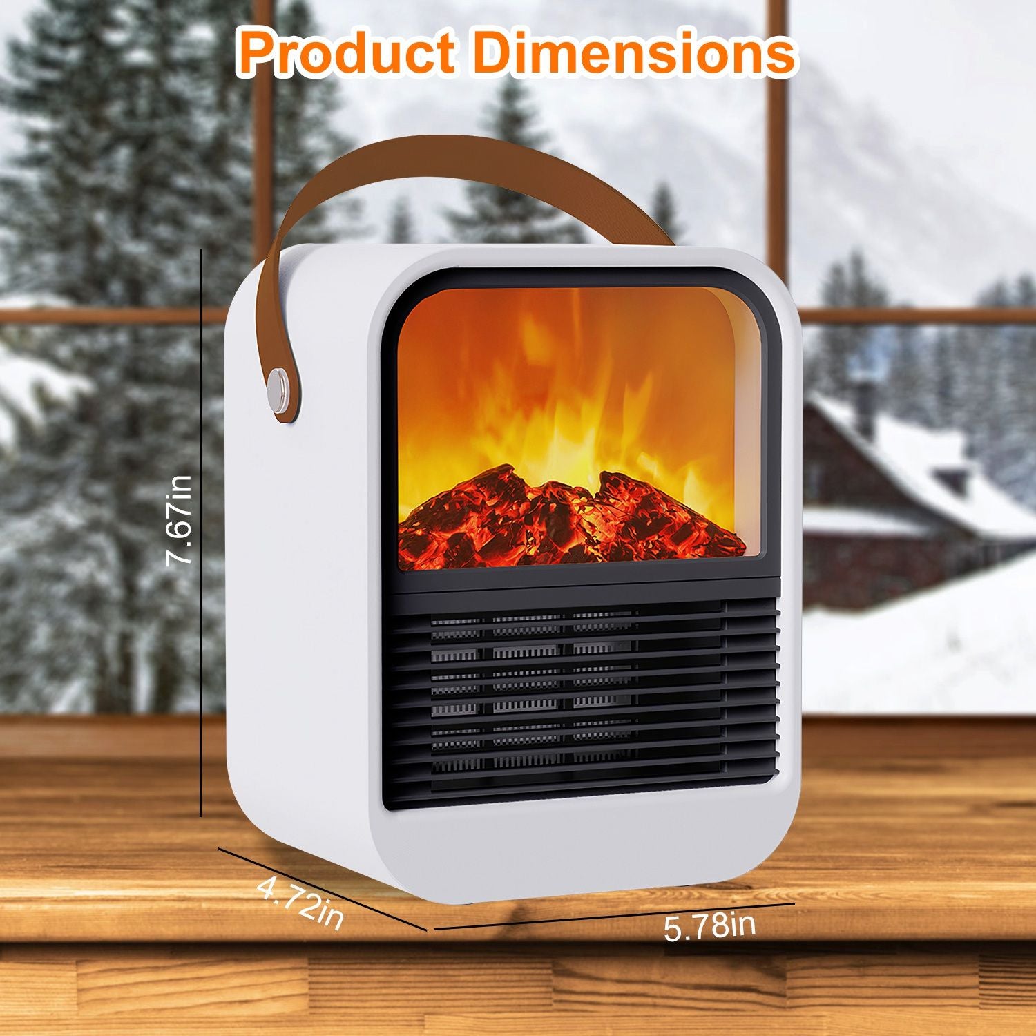 *Artificial Flame Light*:Designed with artificial flame light,create a realistic fireplace experience and bring your house cozy and warmth atmosphere in chilling winter. This lightweight and compact space heater with portable handle can be conveniently placed on the office desk,bedside table,or any corner,take up small space but can bring you endless warmth.