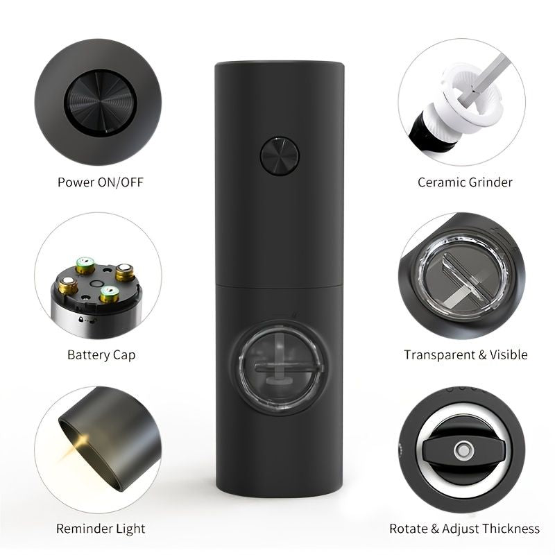 1pc Electric Salt And Pepper Grinder With Adjustable Coarseness Refillable; Pepper Mill; Battery Powered; Kitchen Automatic Grinder; Kitchen Gadgets