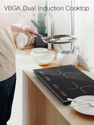 - Safe To Use: VBGK induction hot plate uses 110V~120V and 15A standard in all homes. Child Safety Lock system. Auto Pan Detection will automatically shut down unit after 30 seconds if no cookware is detected. Equipped with diagnostic error message system, low and high voltage warning system.