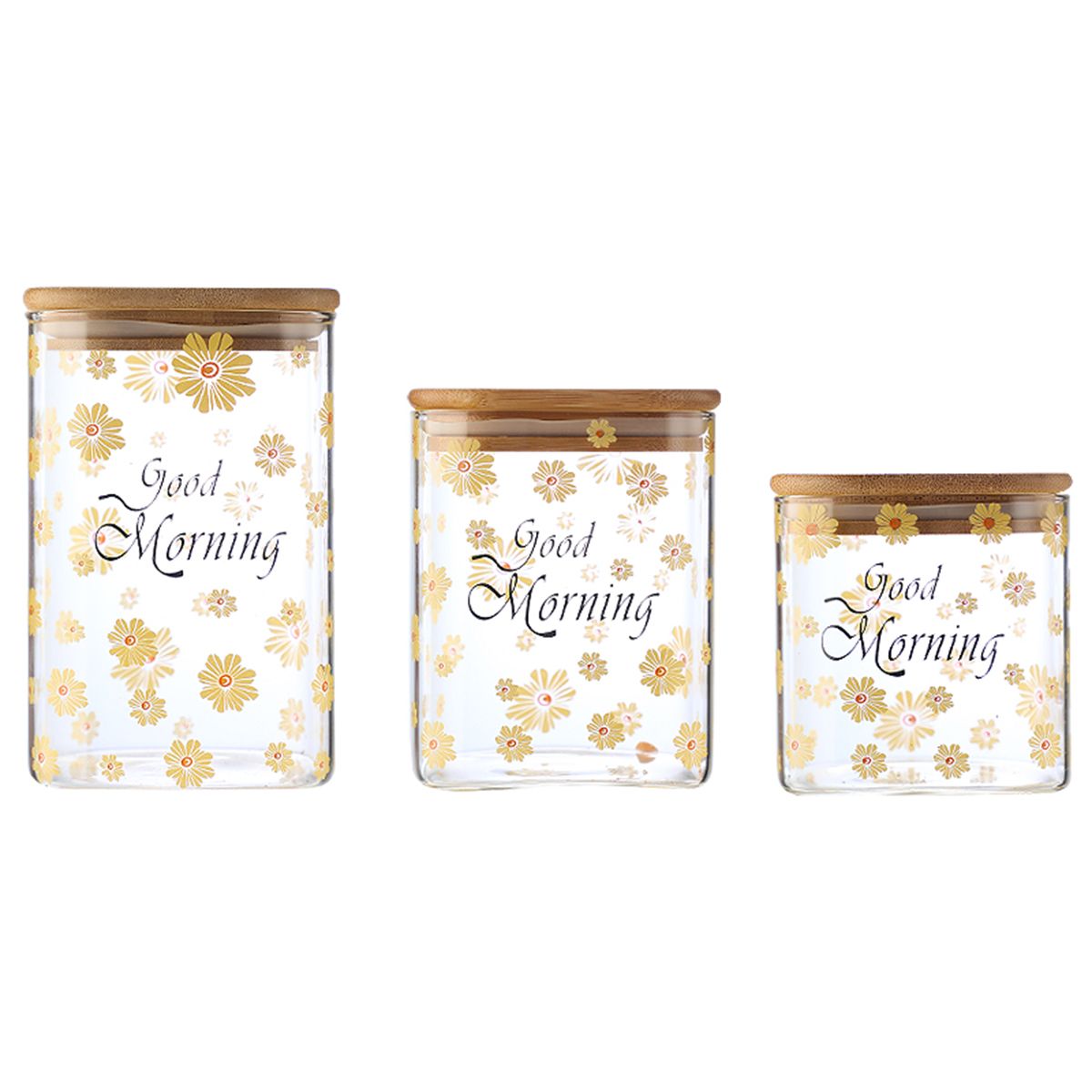 3 Pcs Glass Storage Cans Coffee Cans Candy Cans Snack Cans Miscellaneous Grain Cans Tea Cans Storage Cans Storage Cans with Bamboo Caps - good morning is backordered and will ship as soon as it is back in stock.