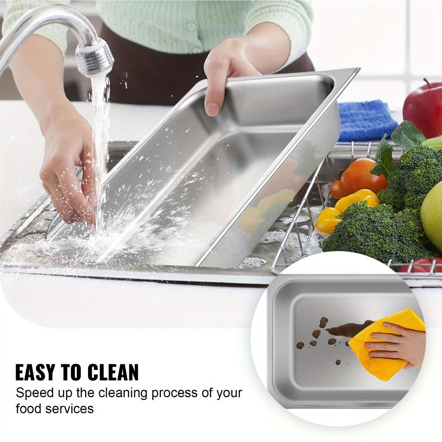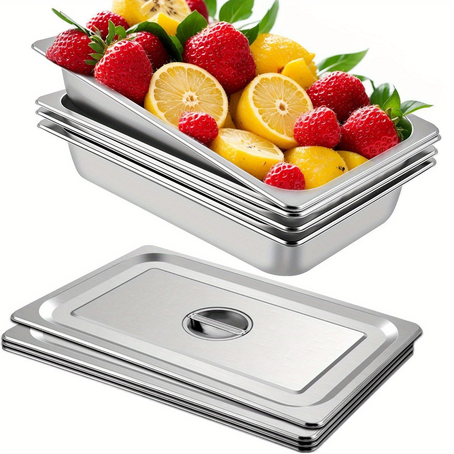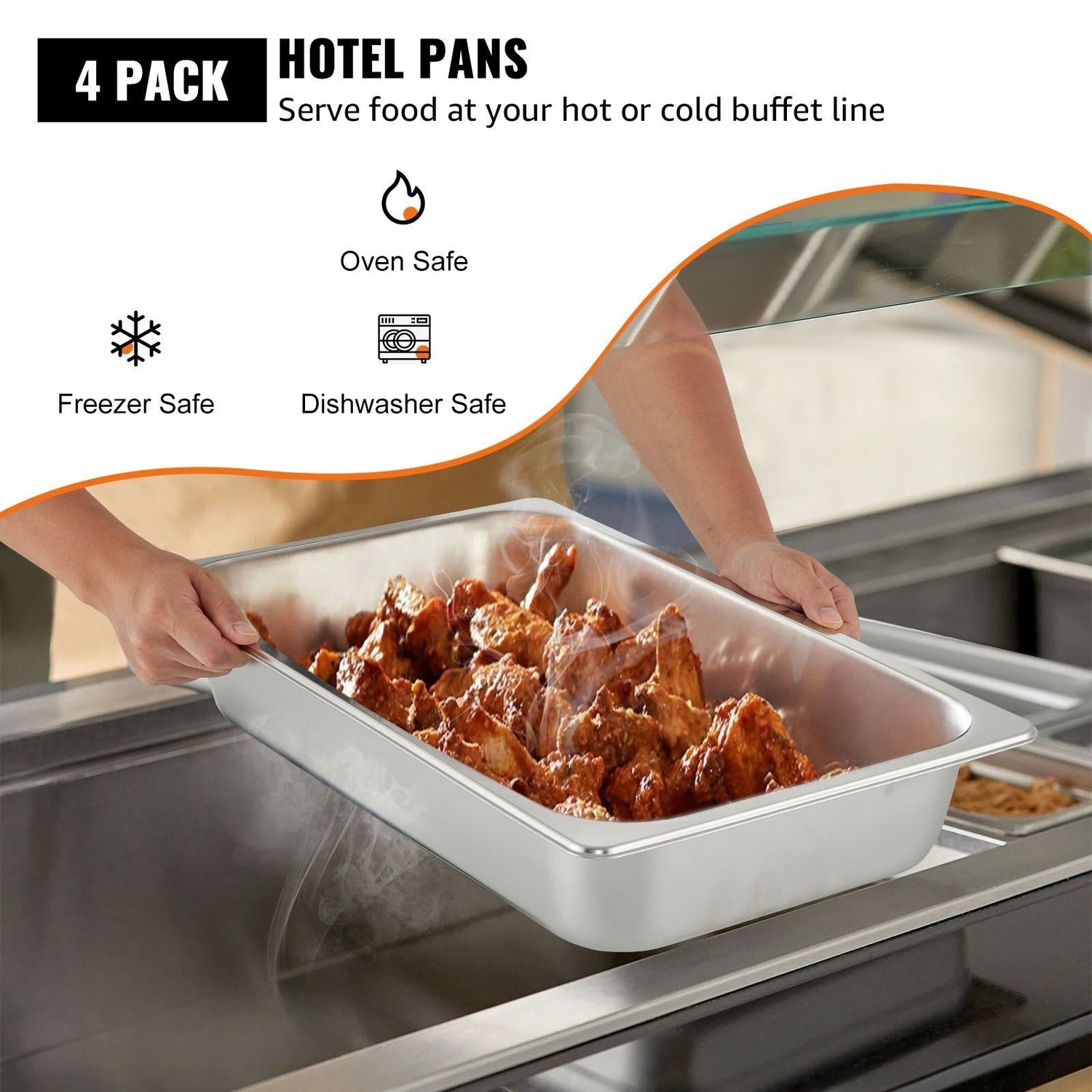 4 Pack Steam Table Pans 20.9 x 12.8 x 3.9 Inch Deep Steam Table Pan Full Size 13L Deep Food Container Stainless Steel Oven Tray Hotel Pans Anti-Jam Steam Table Food Pan