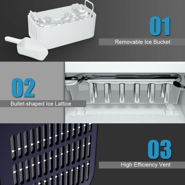Efficient Ice Making in 8.5 Minutes: Featuring a high-efficiency compressor and R600a refrigerant, the portable ice maker cools faster and makes up to 44 lbs of bullet-shaped ice cubes per 24 hours. The electric ice making machine offers 12 chewable and clean ice cubes in one cycle