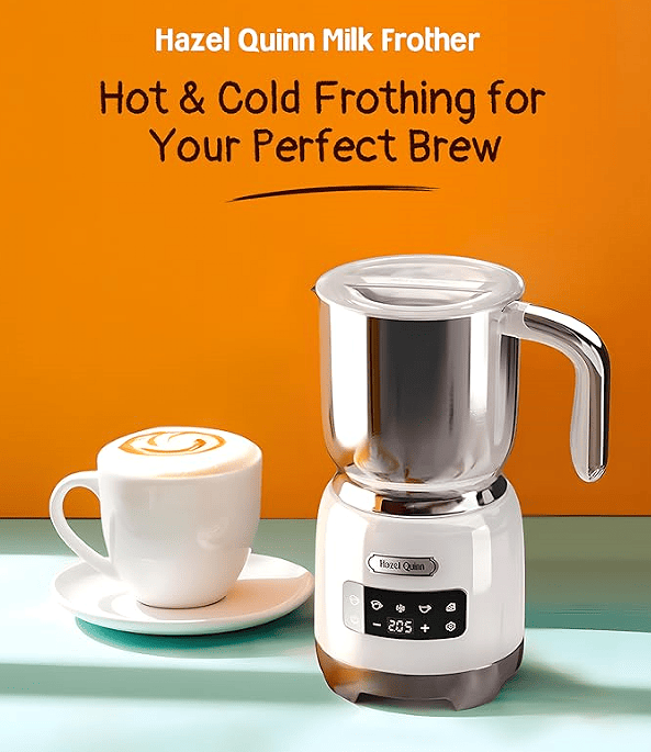 [Hot and cold foaming] -Hazel Quinn, the milk foam appliance has 4 adjustable temperatures to provide your perfect foam with-45°C / 55°C / 65°C and cold foaming. Great for making hot and iced coffee for all your beverage needs.