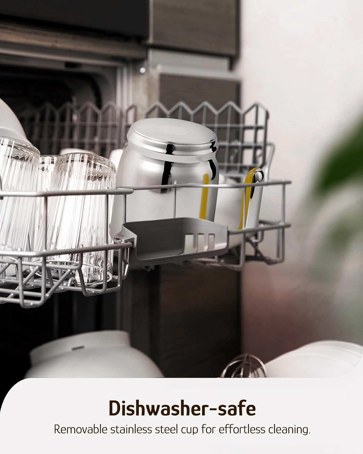 [Magnetic and detachable design] -The magnetic attraction between the cup and the base experiences stability during foaming, eliminating spillover concerns. The removable cups can be cleaned in a dishwasher for easy and easy cleaning.