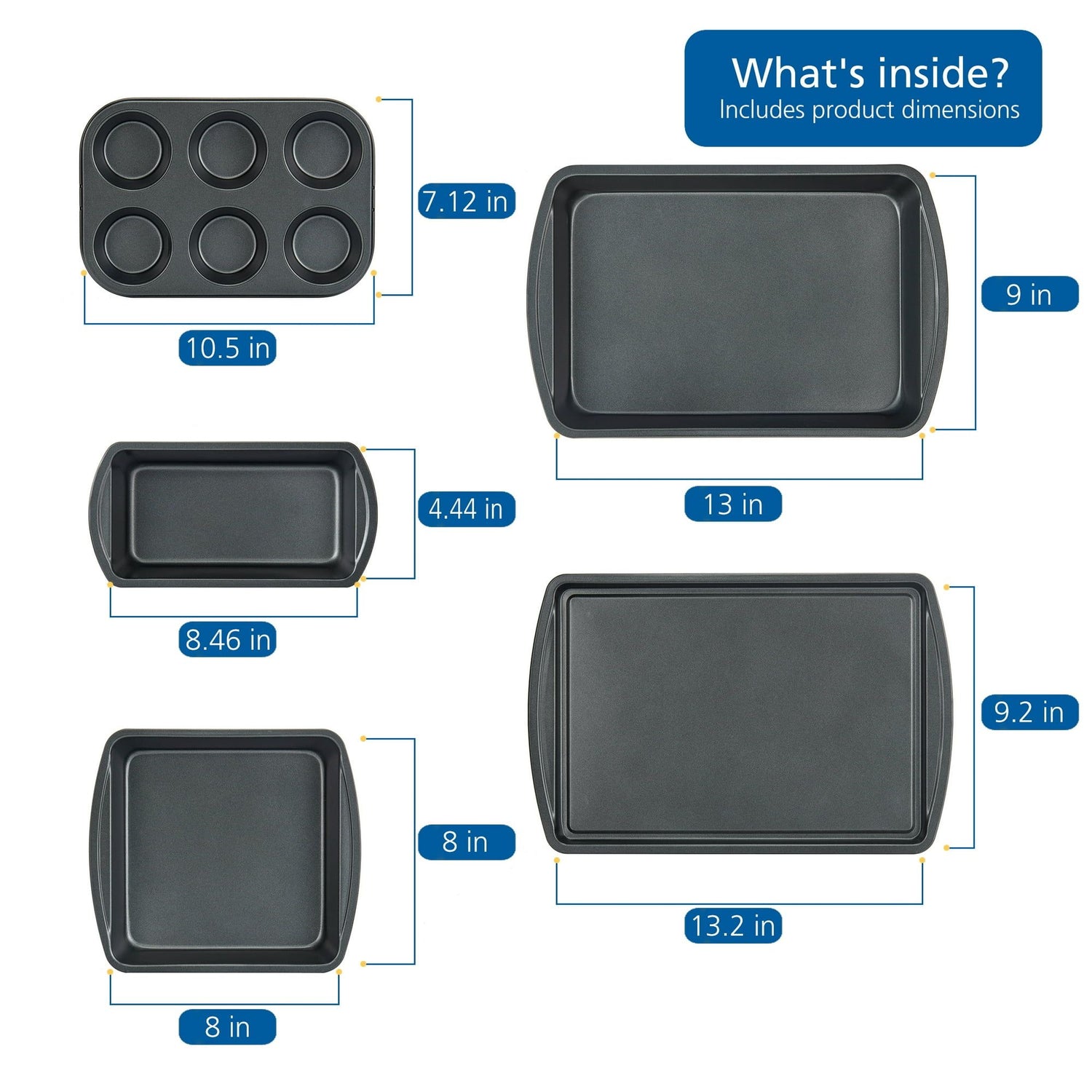 6 Piece Non-Stick Bakeware Sets, Easy for Release and Clean up, Carbon Steel, Gray