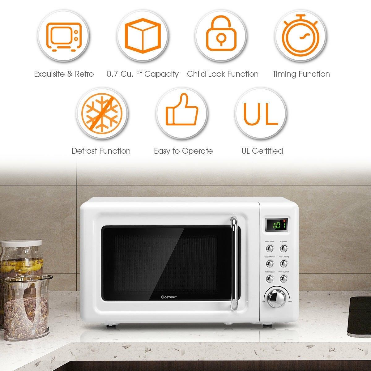 700W Retro Countertop Microwave Oven with 5 Micro Power and Auto Cooking Function