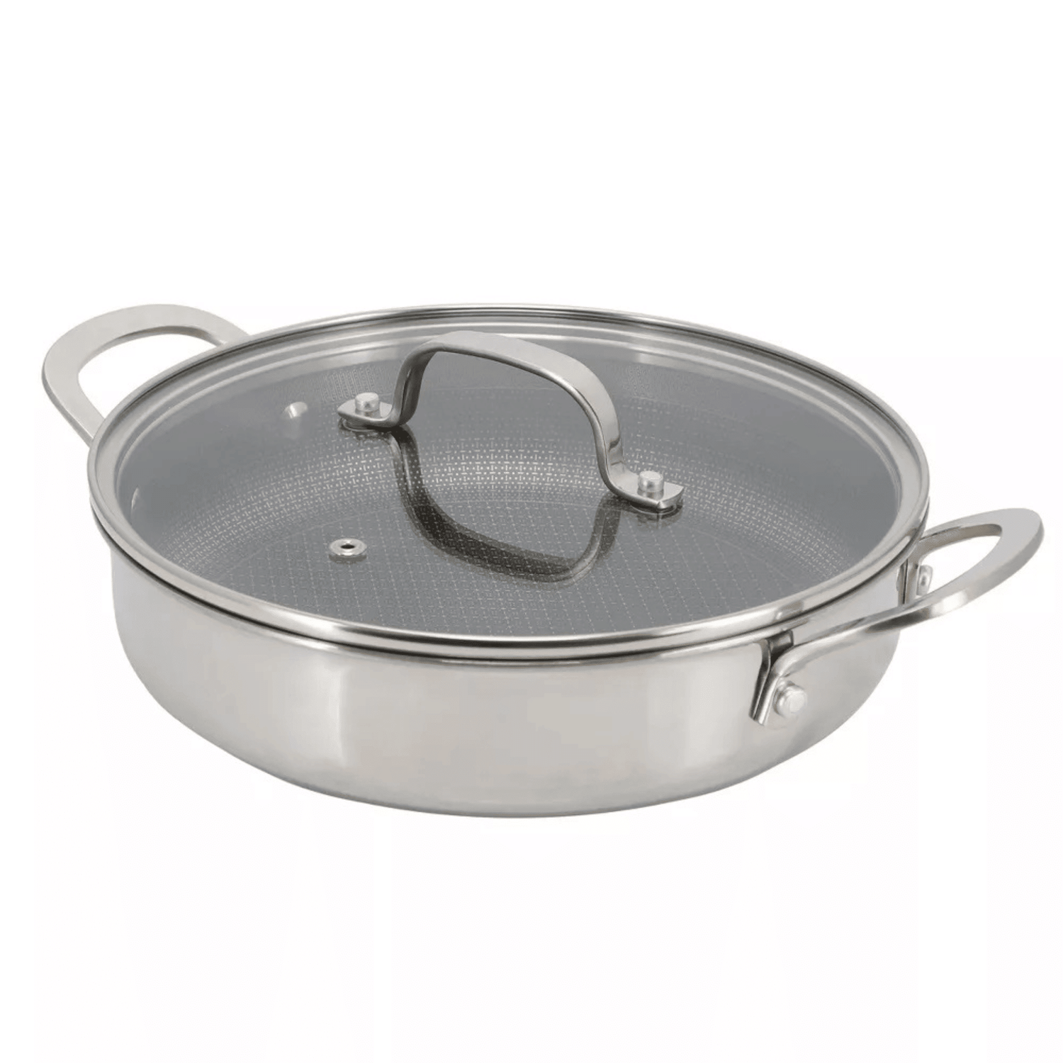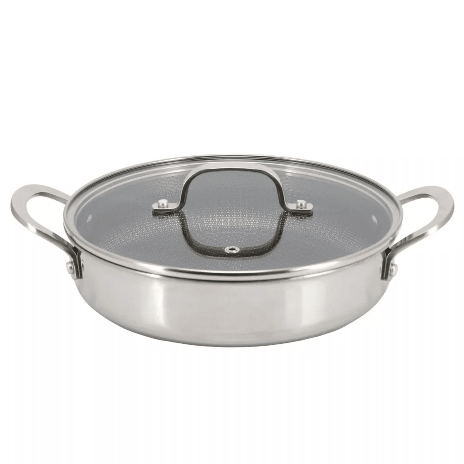 Elevate your kitchen with the Better Chef 11-Inch 3-Ply Stainless Steel Nonstick Deep Fry Pan with Lid in a sleek silver finish. Built for both performance and style, this versatile pan features a PFOA-free nonstick surface that makes food release effortless and is safe to use with smooth-edged metal utensils. Its triple-layer stainless steel design ensures even heat distribution - ideal for everything from frying and sauteing to searing. The double-riveted handle provides a sturdy, comfortable grip, and the included tempered glass lid helps seal in moisture and flavor. Compatible with all stovetops - including induction, gas, electric, halogen, and vitroceramic - this pan is oven-safe up to 500F (or 350F with the lid), making it easy to move from stovetop to oven. While it's dishwasher safe for quick cleanup, hand washing is recommended to extend its life. Whether you're whipping up a weekday meal or experimenting with new recipes, this deep fry pan is a kitchen essential.