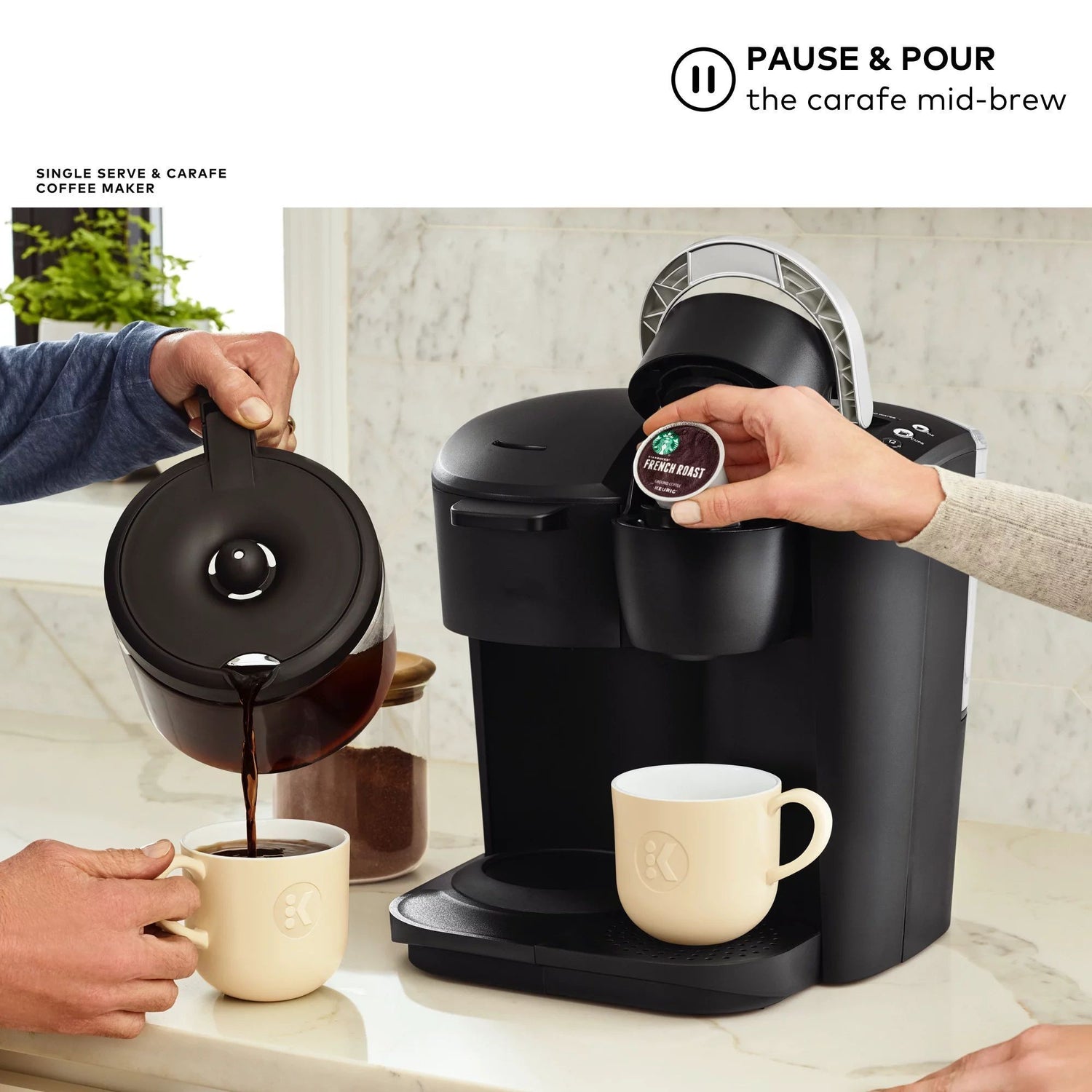 Black single serve and carafe coffee maker - black is backordered and will ship as soon as it is back in stock.