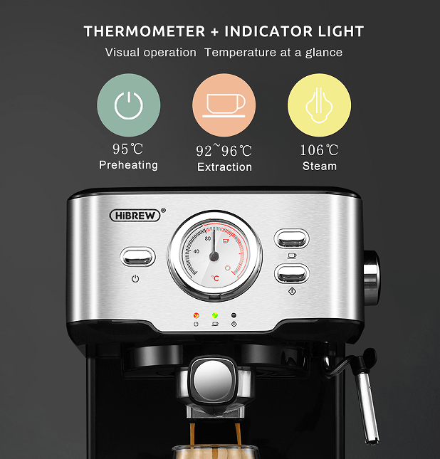 Temperature display-The pressure meter timely displays the brewing pressure and accurately controls the extraction temperature to get the perfect taste