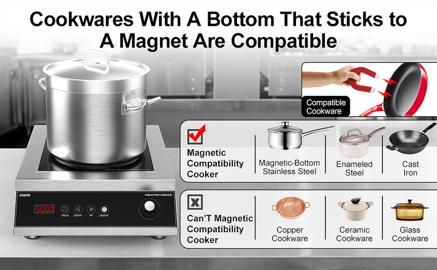 Portable Induction Cooktop: VBGK professional induction cooktop uses 220V working voltage.built to North American electrical standards.5000W of cooking power, Portable induction cooktop and easy to carry perfect for caravans, hotels or yachts, the electric stove is the perfect partner for professional chefs.