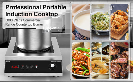 Commercial Induction Cooktop: Professional 5000W Hot Plate with LCD Touch and Knob Control, 4 Hours Timer, and 16 Power Levels is backordered and will ship as soon as it is back in stock.