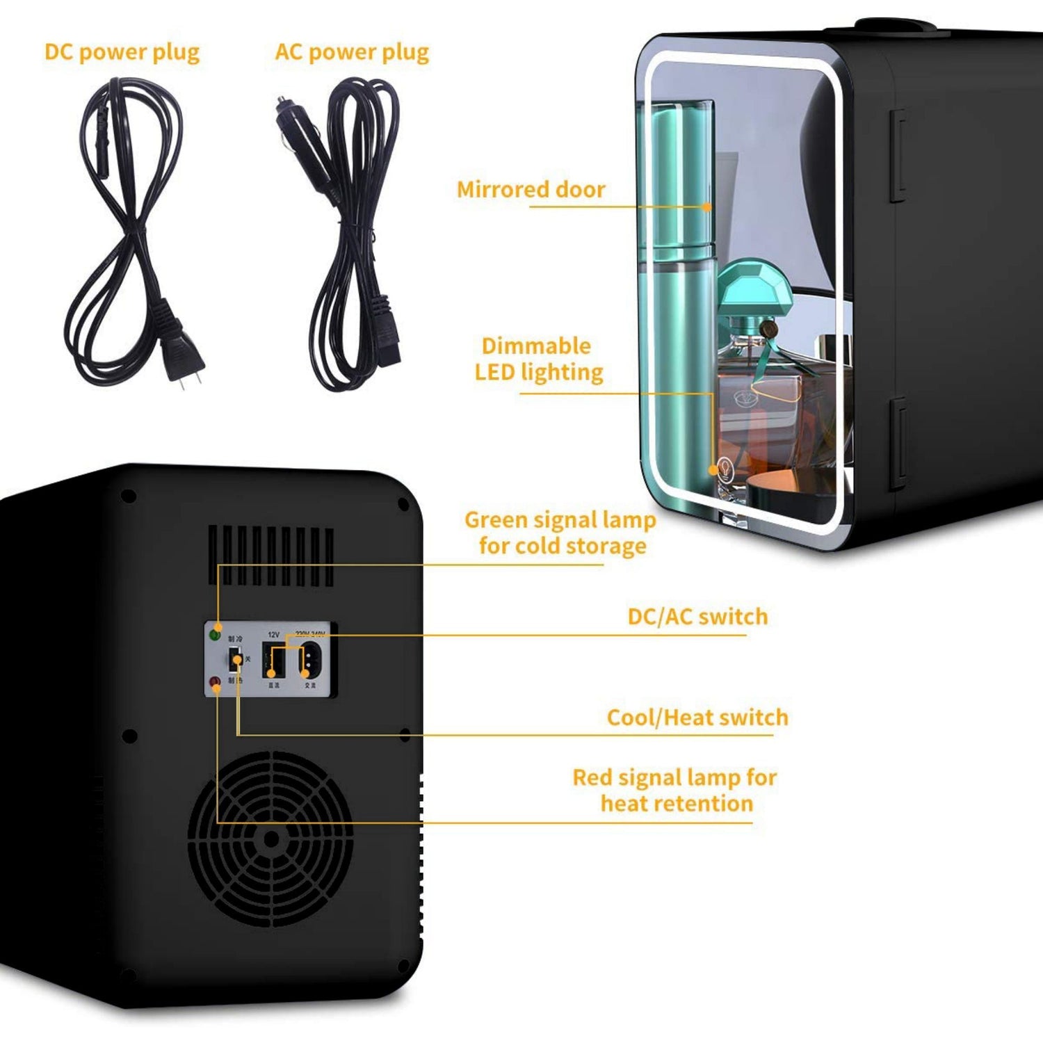 With a single cold water machine and LED lighting mirrors, this mini fridge provides a compact and portable solution to store your favorite skincare, cosmetics, and beauty products. The 6-liter capacity is versatile enough to hold various jars, bottles, and containers, ensuring your products are well-organized and easily accessible.