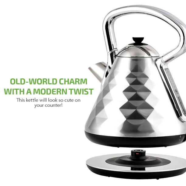 Electric Kettle Hot Water Boiler Stainless Steel 1.7 L Automatic Shut-Off 1500W Cleo Collection Cool Touch Handle Portable Brew Coffee Maker Tea Heater w/ Boil Dry Protection