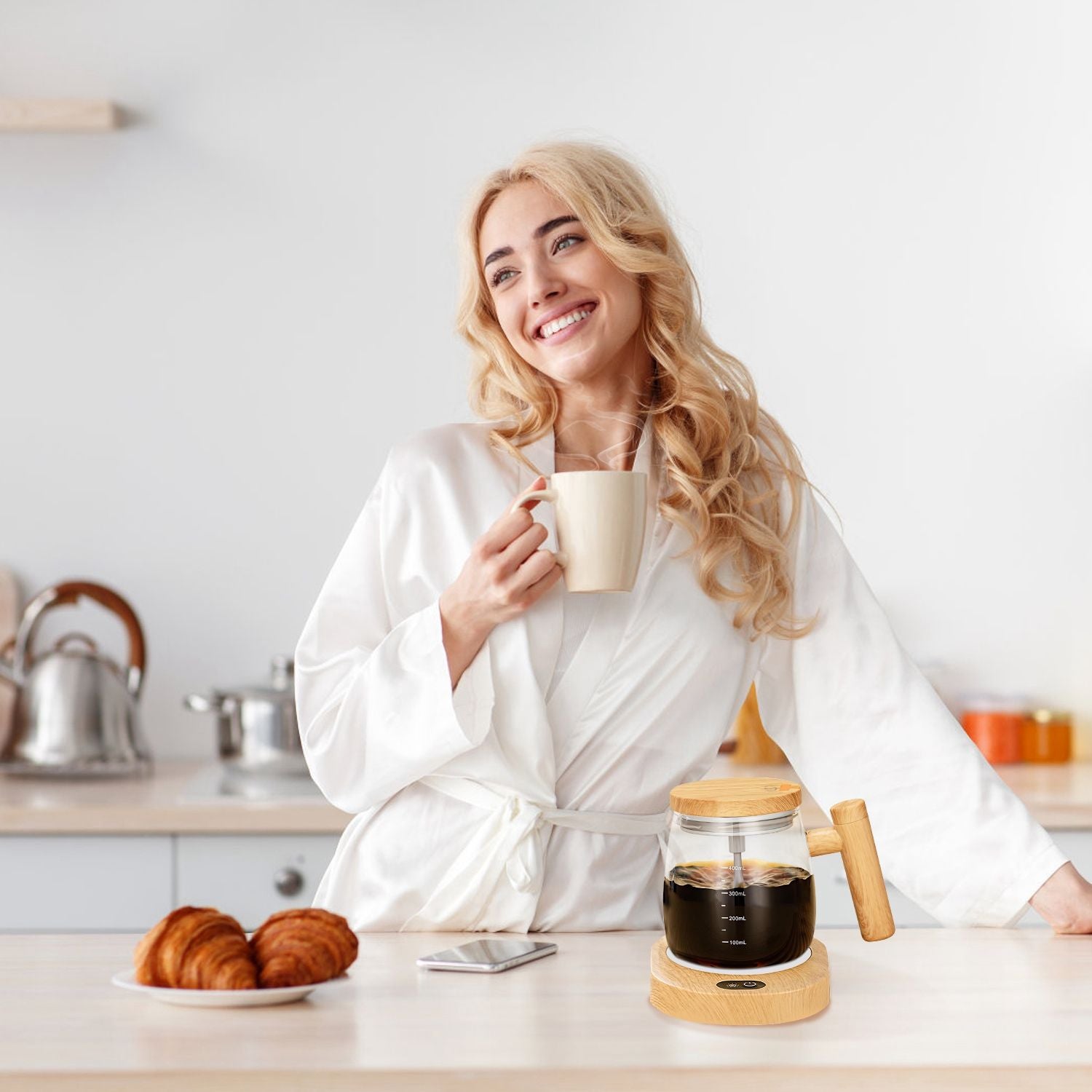 *Considerate Warming Pad*:Our electric mixing mug comes with a warming pad that keeps the beverage at a desirable temperature(50-55℃/122-131℉),allowing for the enjoyment of warm drinks over an extended period. Note: The warming pad must plug in for use all the time. The charging cable can not detached from the warming pad.