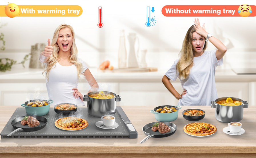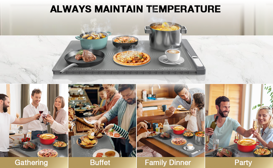 【Widely Compatible & Various Occasion】Designed for universal compatibility, our electric warming tray suits all types of materials tableware, as long as the high temperature resistant tableware can be used. Our food warmer is also a versatile home assistant, mask heating, dough fermentation and defrosting are all easily handled. Suitable for home use in all seasons. Versatile for every time, keeping the perfect temperature for family dinners, gatherings, events, parties, buffets, travel.
