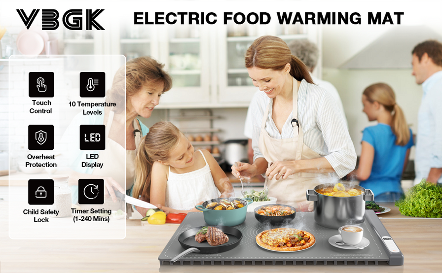 【Fast and Even Heating】: VBGK food heating pad uses 3000W heating wire to evenly cover the entire bottom, achieving 10 seconds fast heating. In addition to the anti-scalding edge, it can be heated at a constant temperature. Supporting large plates and small plates, this electric heating tray is a must-have in the kitchen. It is used as a heating tray for people who host parties and gatherings to keep food warm during the party. It can also be used as a buffet server to keep the dishes at the perfect temperature throughout the event.