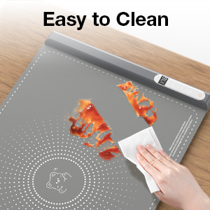【Child Lock and Safety Protection Device】:VBGK Food Heating Pad is equipped with a touch control panel, LED light, and built-in child lock, which can be safely locked to protect curious little hands. The roll-up silicone electric heating tray has a 1-4 hour automatic shut-off function to save energy and prevent overheating. The food heating pad is equipped with raised silicone feet to enhance heat dissipation and protect your tabletop from heat damage.