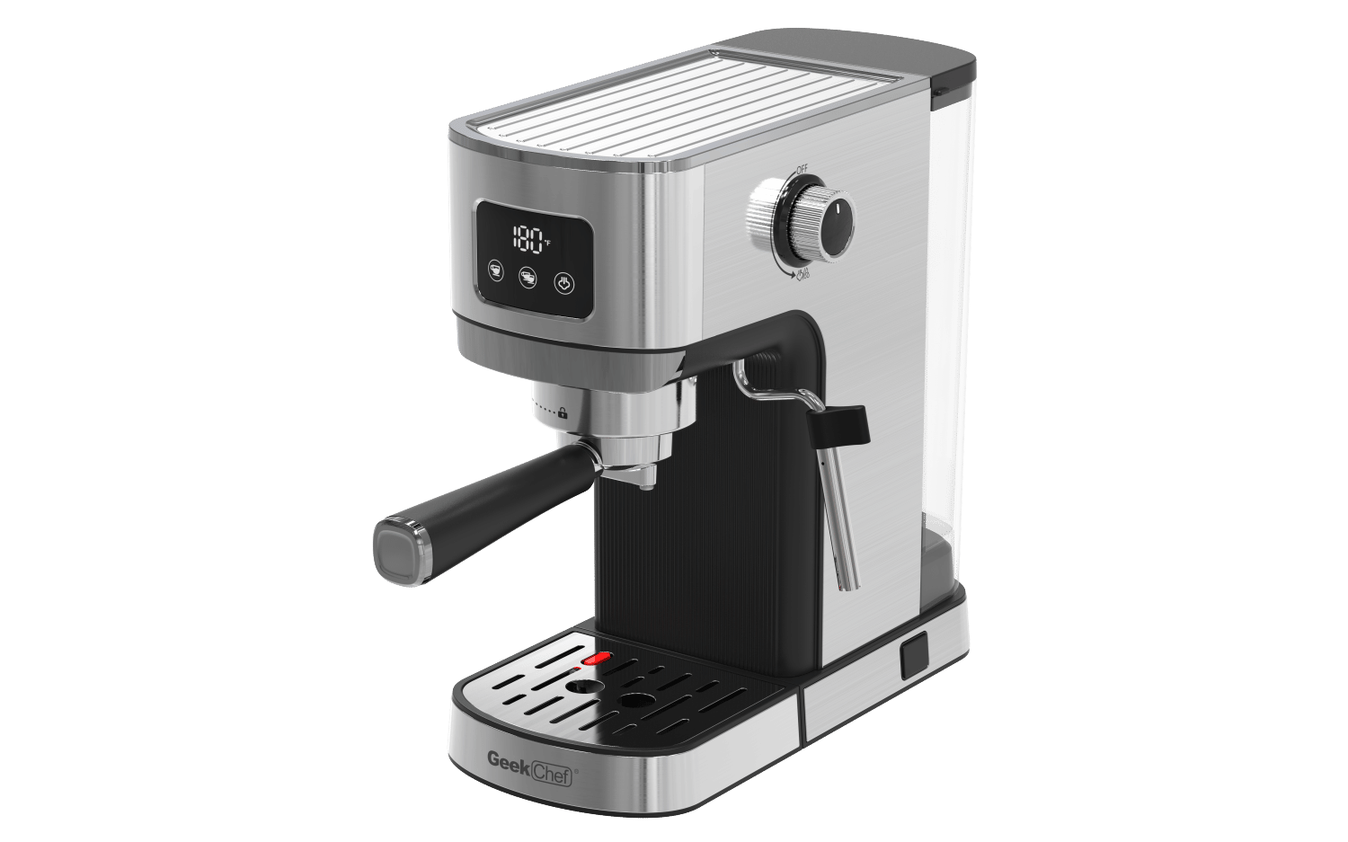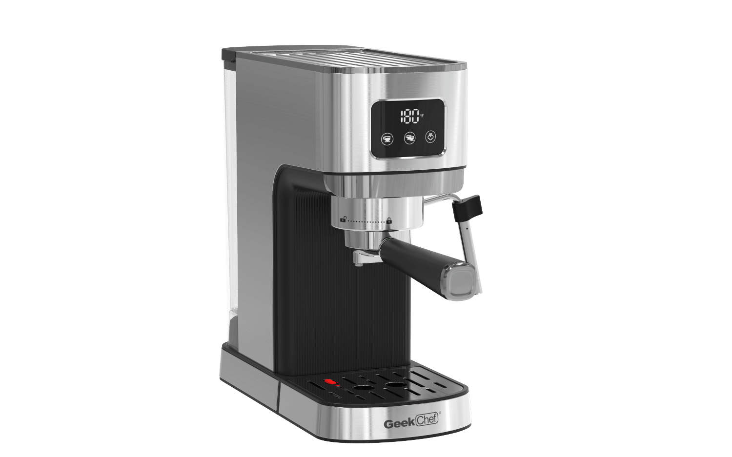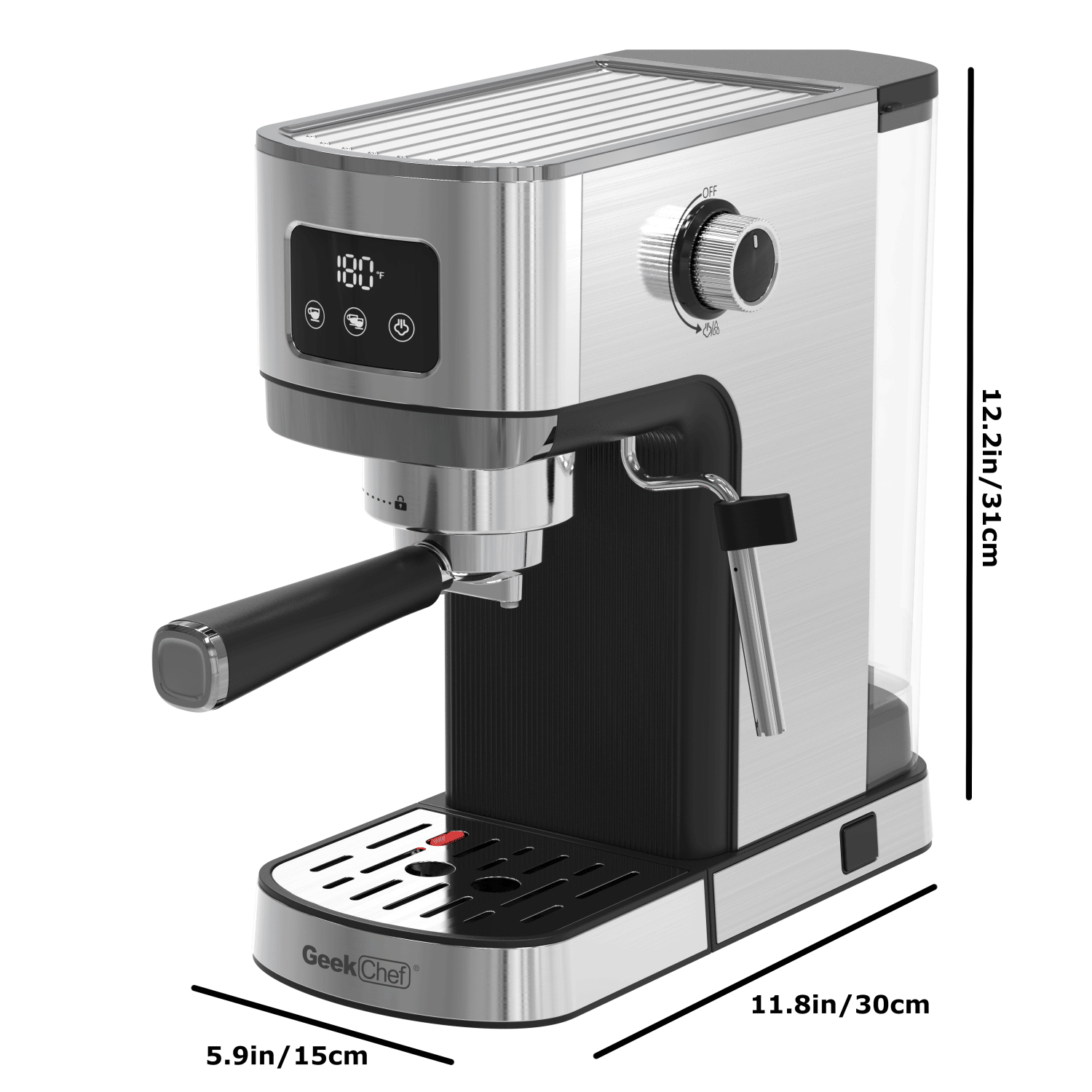 Geek Chef Espresso Machine, Cappuccino & Latte Machine with ESE POD Filter & Milk Frother Steam Wand, Accurate Temperature & Time Control, Compact Coffee Machine for Home,Stainless Steel