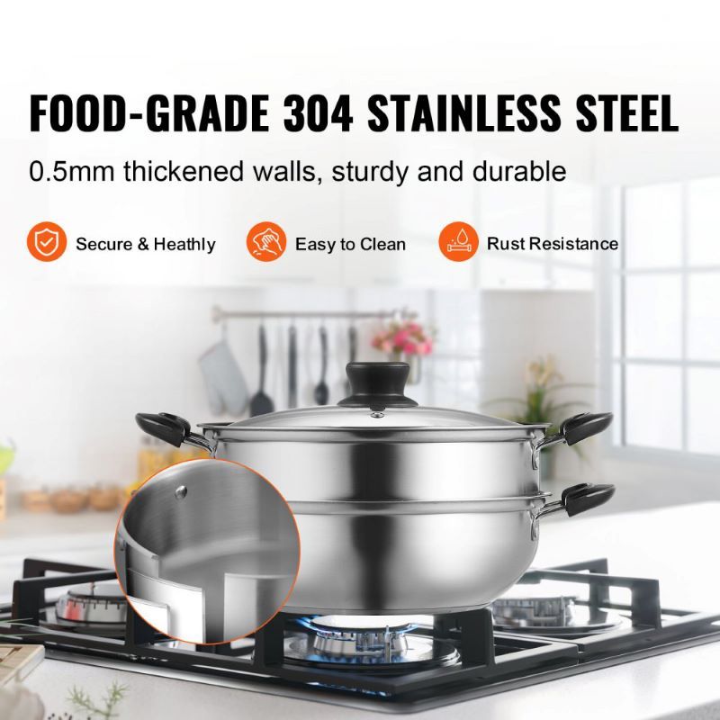 0.5mm thickened pot wall prevents deformation, and the anti-oxidation protective layer also keeps the food steamer rust-free and easy to clean.