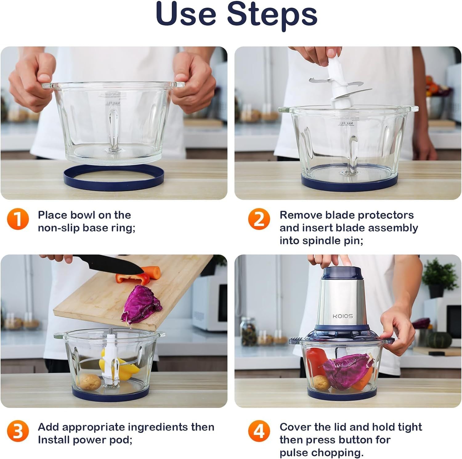 KOIOS 500W Powerful Electric Food Processor with 8 Cup Stainless Steel & Glass Bowls, 2 Speed Mode Electric Food Chopper with 2 Sets Blades Electric Meat Grinder Chopper for Family & Baby Use - Blue is backordered and will ship as soon as it is back in stock.